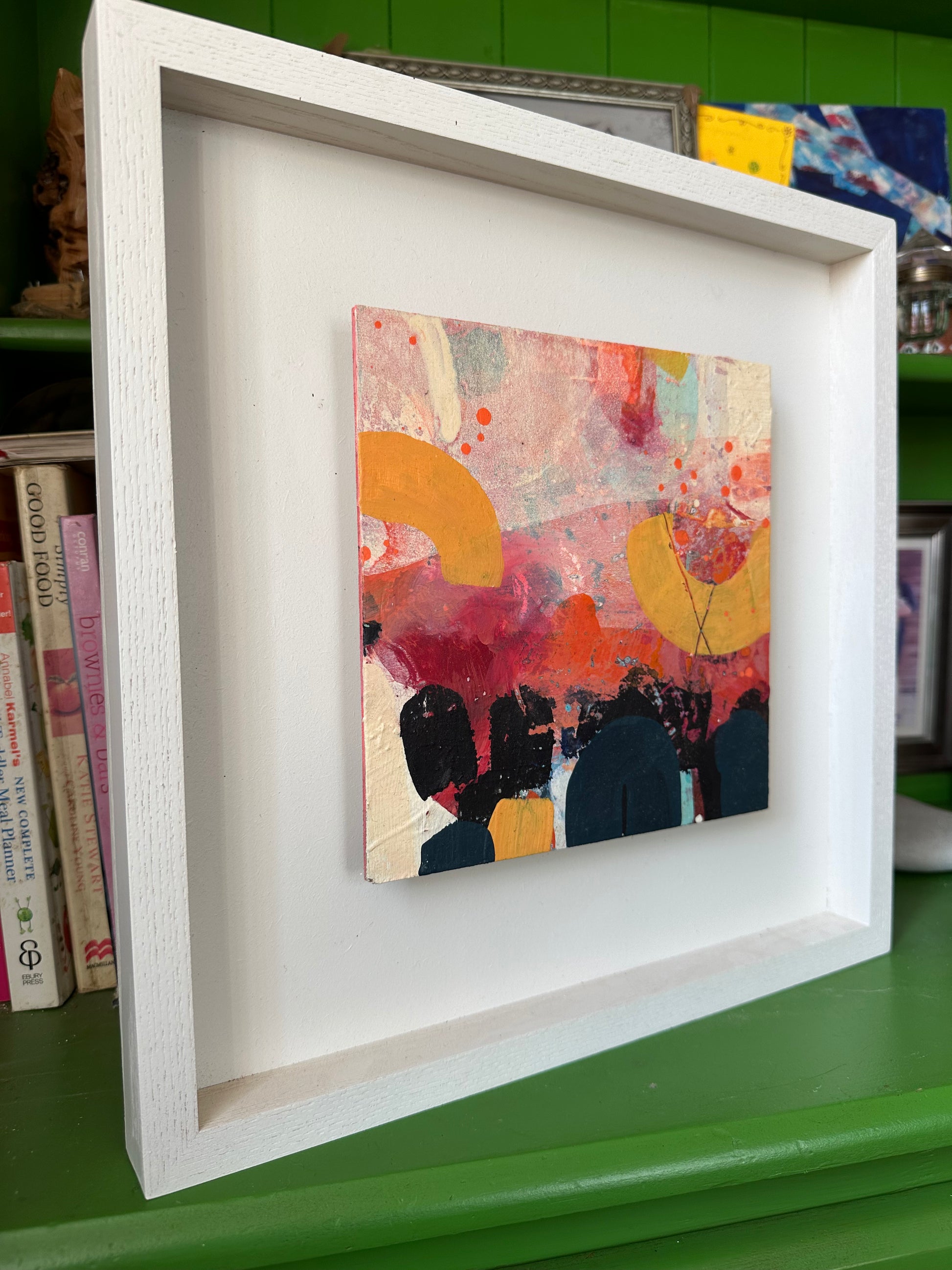 I am a visual artist based in Norfolk, UK. I primarily paint large abstract paintings which play with pictorial space, layering, saturated, rich colour, and linear observed shapes to create immersive pieces for the home.